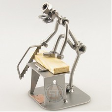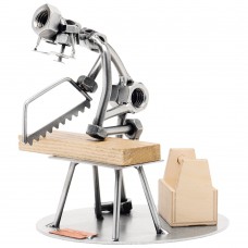 Zelf is de man/de vrouw. Met het been op het hout en de zaag in de hand...
