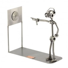 Erg mooi metalen vissersbeeld met een visser die een vette buit aan de haak geslagen heeft. Elk meta..
