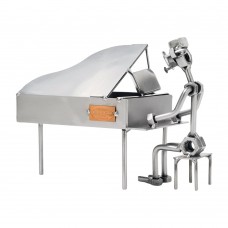 De pianospeler slaat op de toetsen van zijn vleugel...
